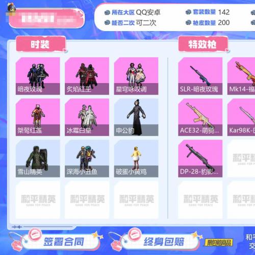 安卓 手Q-5粉装-5特效枪-3载具-2粉色飞行器-61178热力值-2王牌印记-142套装-20