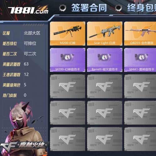 【可二次 英雄武器数量:63 英雄角色数量:5 王者武器数量:12 王者春,王者魅影 M4A1-雷神音效卡,AK47-火麒麟音效卡,Barrett-毁灭音效卡,M200-幻神音效卡 稀有武器:2个 生化号,爆破号,六盘龙,六烈龙】【★找回包赔★北部4051】:北部北京一区-57V-可二次**-【Lv.102.荣耀元帅】-【段位:荣耀之巅】M200-幻神/幻神-周瑜皮肤/AWM-裁决(2)