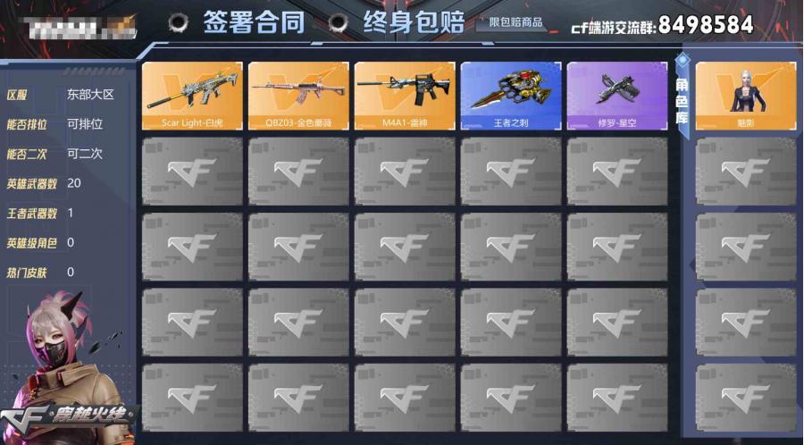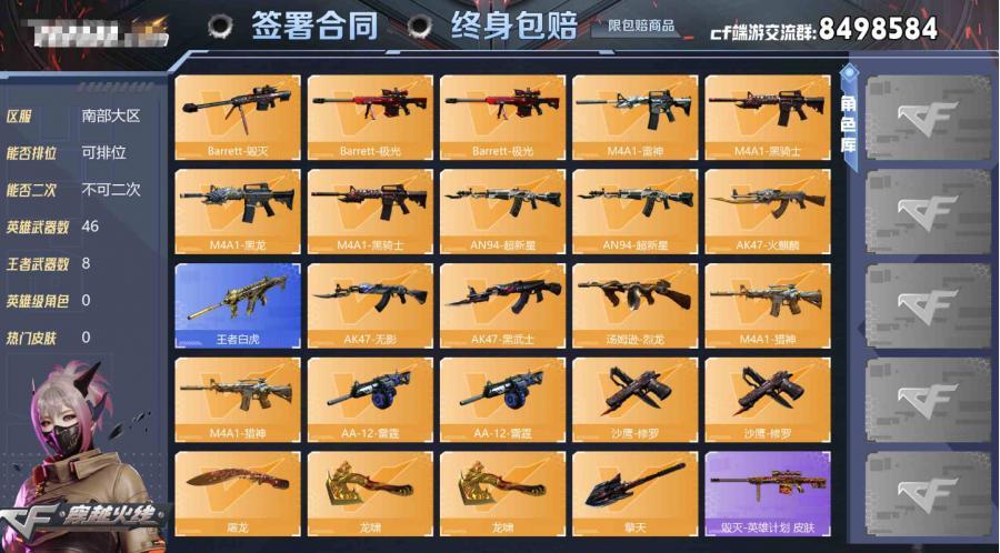 广东一区-53V-8王者武器数-2炫金武器数【热门武器】:王者白虎,M4A1-黑骑士,汤姆逊-烈