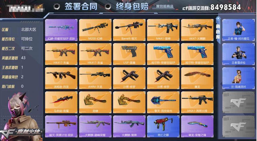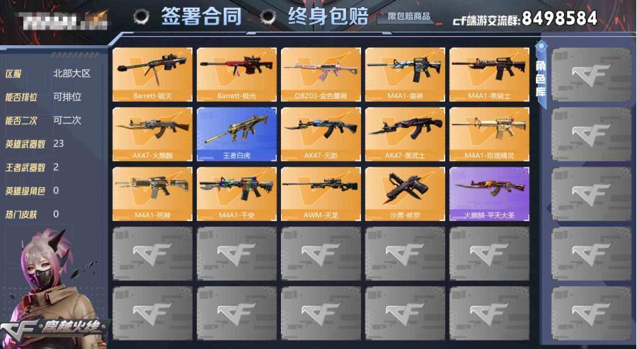 【自带包赔最高三倍】:北部战区:山东一区-LV101-等级元首-段位未定级-23V-2王者-1炫金【热门武器】:王者白虎,QBZ03-金色蔷薇,死亡之眼,M