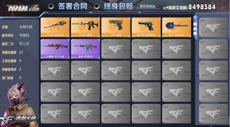河北一区-26V-0王者武器数-1炫金武器数【热门武器】:M200-竞技荣光,USP-雷暴